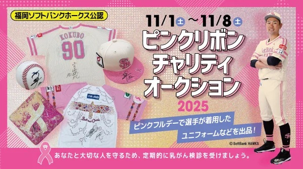 PRTIMES「福岡ソフトバンクホークス「ピンクリボンチャリティオークション」開催 ~監督・選手使用ユニフォームなど貴重アイテムを出品、売上の一部を寄付~」掲載